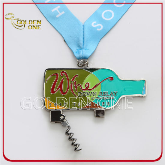 Gewohnheit glänzende Nickel-weiche Emailmetallmedaille mit Weinkorkenzieher